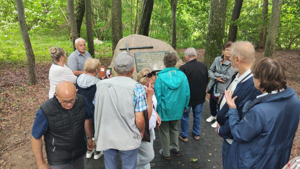 W drodze powrotnej zatrzymaliśmy się jeszcze w Cewicach przy obelisku w miejscu zamordowania przez Niemców w 1939 r. ks. prał. Edmunda Roszczynialskiego. Był bratem przedwojennego wójta Rumi Hipolita Roszczynialskiego (zamordowanego w Piaśnicy) i proboszczem kościoła Trójcy Św. w Wejherowie. Obecnie trwa jego proces beatyfikacyjny. Pomodliliśmy się w tej intencji i zapaliliśmy znicz.