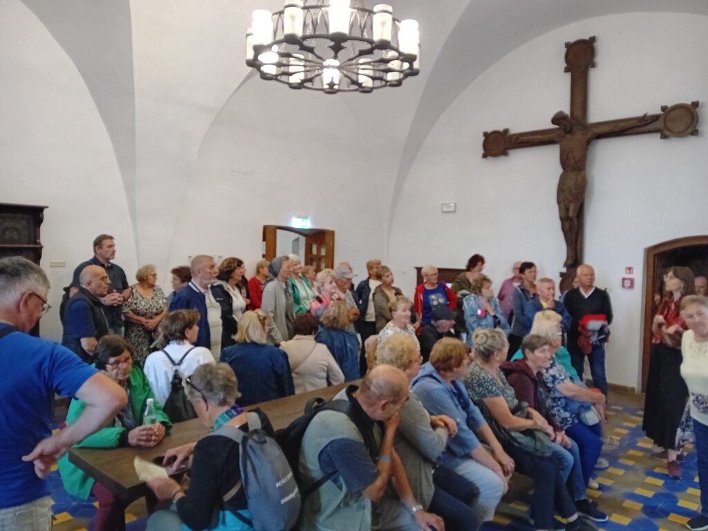 13 lipca rumski part ZKP zorganizował wycieczkę autokarową na zachodnie Kaszuby. Wzięło w niej udział prawie 60 osób, w większości członkowie Oddziału. Rozpoczęliśmy od zwiedzania z przewodnikiem zamku krzyżackiego i muzeum zachodniokaszubskiego w Bytowie. Chociaż część uczestników wiele lat temu miała okazję zwiedzać to miejsce, między innymi na wycieczce zorganizowanej ponad 20 lat temu również przez nasz part, to zmiany jakich dokonano remontując i wyposażając sale zamkowe w nowy sprzęt i eksponaty zrobiły na wszystkich pozytywne wrażenie. Po zwiedzeniu zamku był jeszcze spacer po centrum miasta (rynek) i niektórzy weszli na wieżę dawnego kościoła Św. Katarzyny.